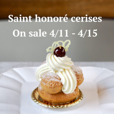 4月11日(土)から15日(水)の期間限定の販売です。 Saint honoré cerises.(Cream puff and cherry)プチシューとチェリーの上品で華やかなケーキ。 パイとシュー生地の台にカスタードクリームとチェリーのコンポー […]