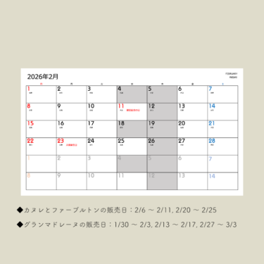 2月は下記を休業いたします 4日(水)、5日(木)、12日(木)、18日(水)、19日(木)、26日(木) ◆カヌレとフォーブルトンの販売日2/6 〜 2/11, 2/20 〜 2/25 ◆グランマドレーヌの販売日1/30 〜 2/3, 2/13 〜 […]