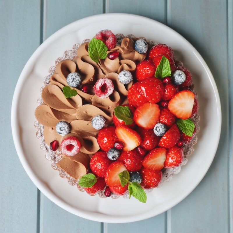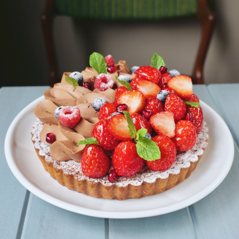 Tarte fraises à la crème chocolat (Strawberry Tart with Chocolate Cream)