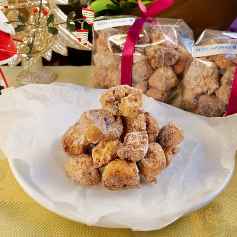 発酵させた生地に数種類のドライフルーツとスパイスを練り込んで、一口サイズに焼き上げました。