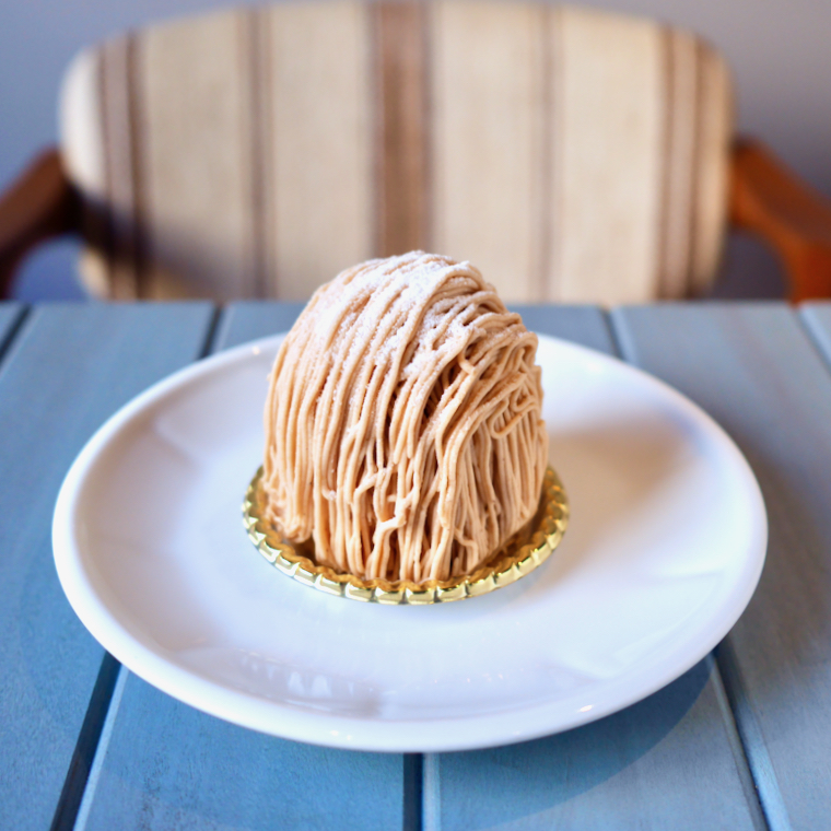 細く絞ったマロンクリームは、濃厚な栗とほのかにブランデー風味で優しい口溶け。