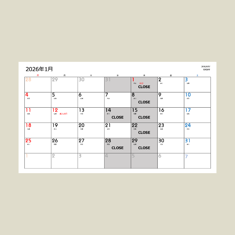 ◆ 感染症等の状況に対応するため、休業日を変更する場合があります