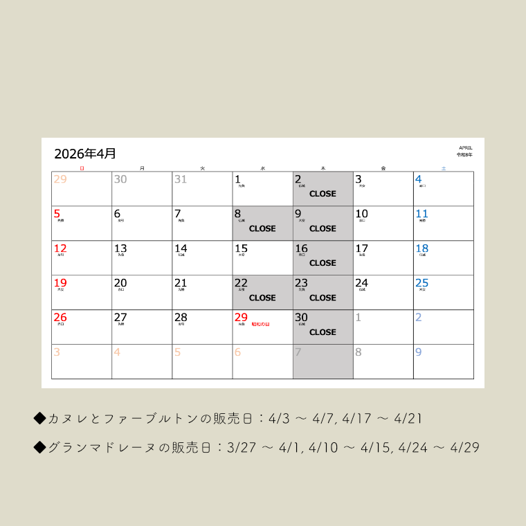 ◆カヌレとフォーブルトンの販売日